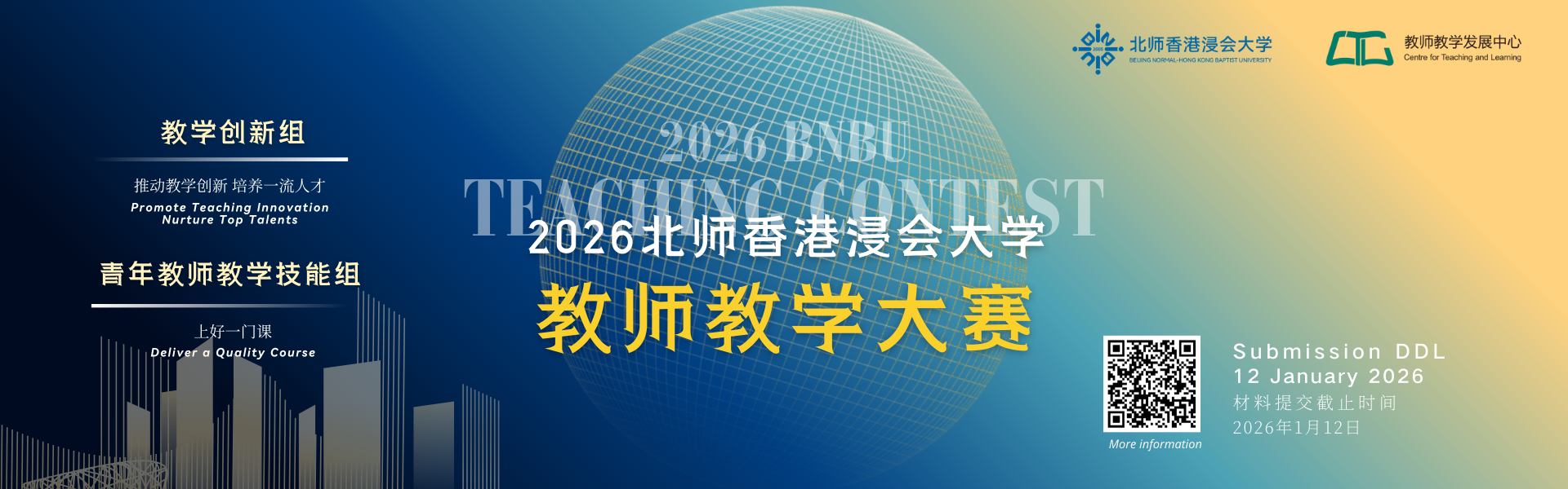 To promote teaching excellence at Beijing Normal - Hong Kong Baptist University (BNBU), the Centre for Teaching and Learning (CTL) is pleased to launch the 2026 BNBU Teaching Contest. This institution-wide initiative aims to uphold the spirit of “Fostering Virtue and Cultivating Talents”, promote teaching innovation, support the development of teachers, and build a high-caliber teaching community....