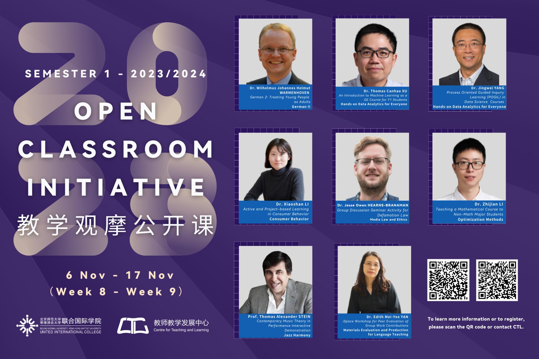 | Open Classroom Title: Teacher-led Group Discussions to Help Students Better Understand the Complex Concepts Open Classroom Type: Physical Classroom Course Title: Big Ideas in Social Sciences Course Type: Major Required Course, Year 1 Date & Time: 21 Nov 2023, 16:00 – 17:50 Description: 1). Teacher's language use: if the language is too difficult, or if the teacher speaks too fast or too slow; 2). Discussion questions in class: if the questions are good ones to provoke student participation and understanding. |