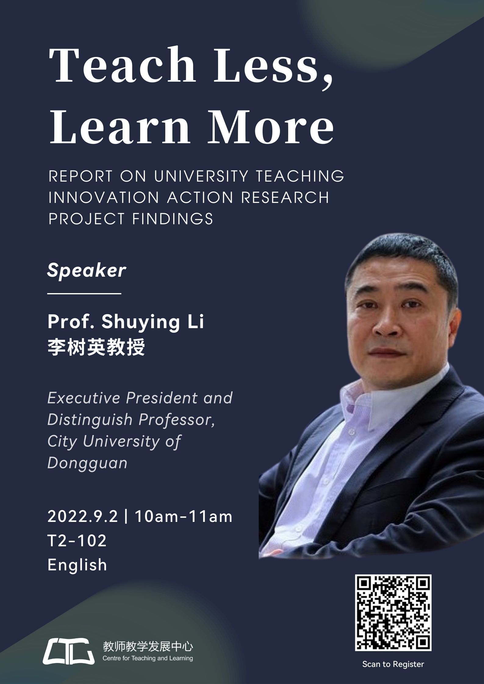 Speakers: Prof. Shuying Li 李树英教授 (Executive President and Distinguished Professor, City University of Dongguan)