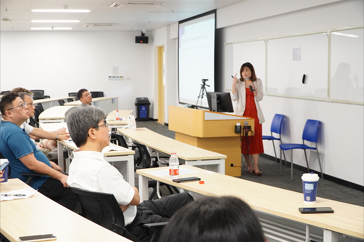 林彩丽博士从申报意义、流程手续及注意事项等方面多角度作详细说明,并邀请申请团队成员刘力铭老师介绍如何将思政元素更好地融入课程。蒋崴博士基于自身成功经验,分析解读了省级一流本科课程的申请要求及申报方式,分享了如何把产业和学科最新前沿引入课程内容的经验,并从专业角度出发提出了如何拍摄高质量课堂实例视频的建议。现场与会教师展开了热烈讨论与交流。