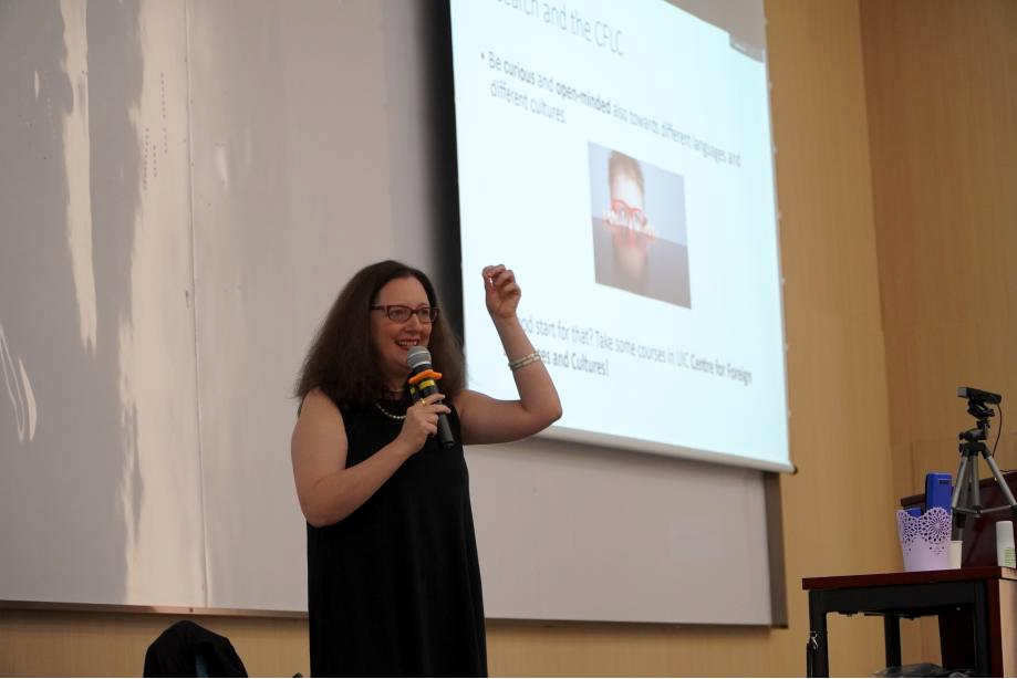 In the end, Prof. Viti elaborated on her motto of doing research, similar to the motto of UIC “In knowledge and in deeds, unto the whole person”, which says “research is a holistic process, a substantial part of one’s identity, and must affect your own life (never stop researching).” Based on this motto, she believes that the academic-friendly environment in UIC has provided great chances for teachers to have good scientific dialogues, which is extremely important for doing research. She also stressed the importance to acquire knowledge of different languages and cultures in order to be more open-minded, and commended the important resources of the UIC Centre of Foreign Languages and Cultures.