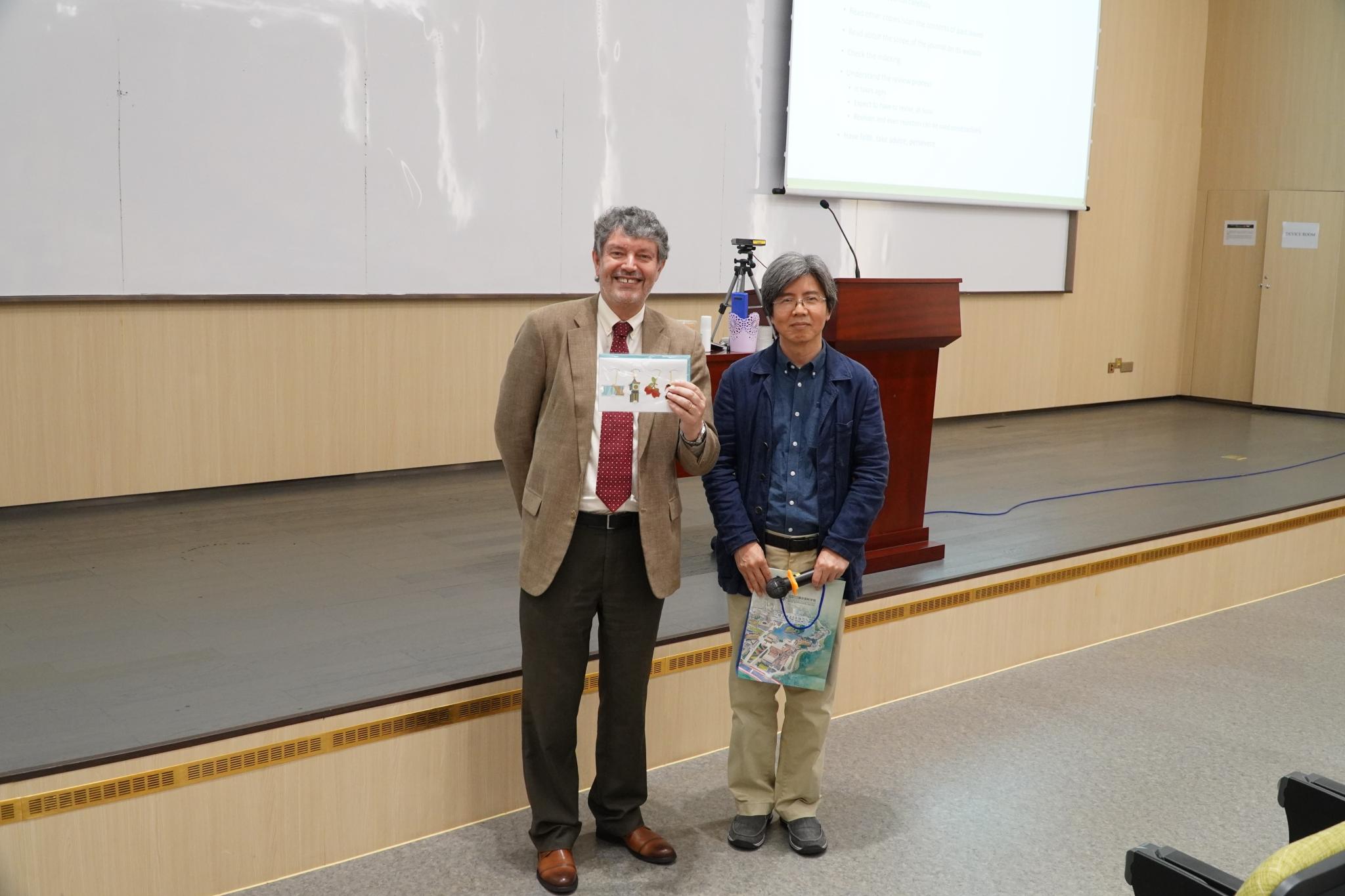 Prof. Huaxiong Huang (right) presenting a souvenir to Prof. John Corbett (left)