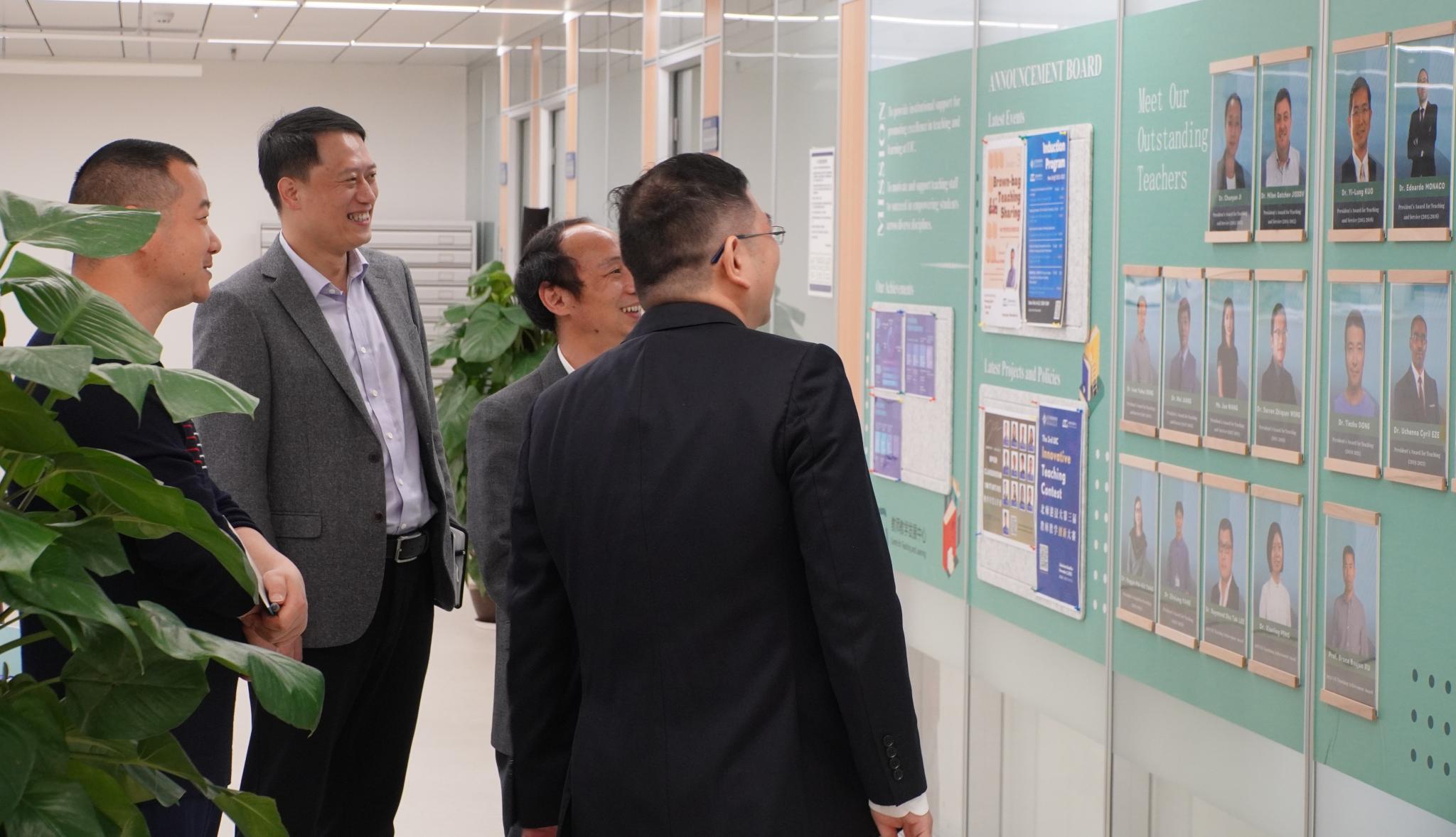 郭奕龙陪同卿中全一行先后参观了北师港浸大教师教学发展中心、校史展厅、学习资源中心、艺峯等,介绍了学校的办学理念和核心文化。