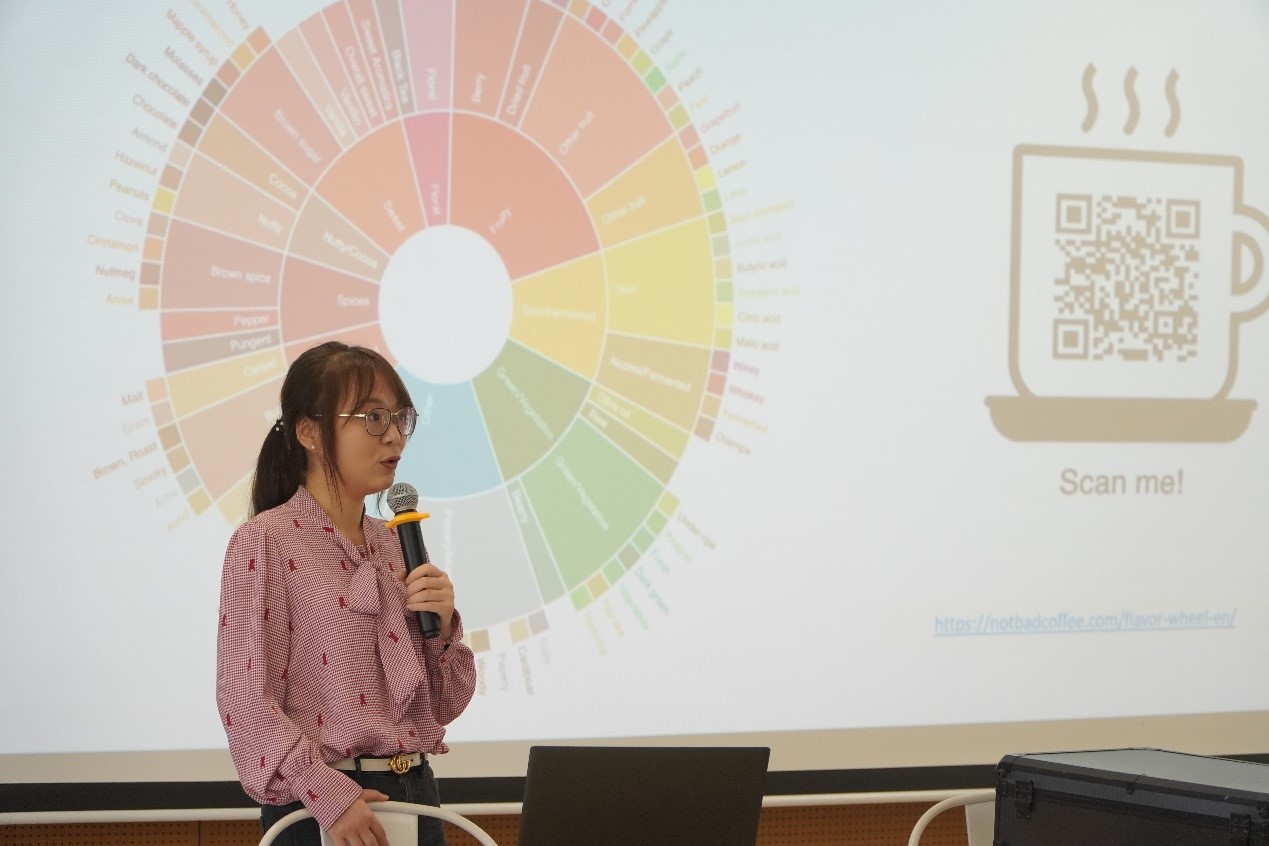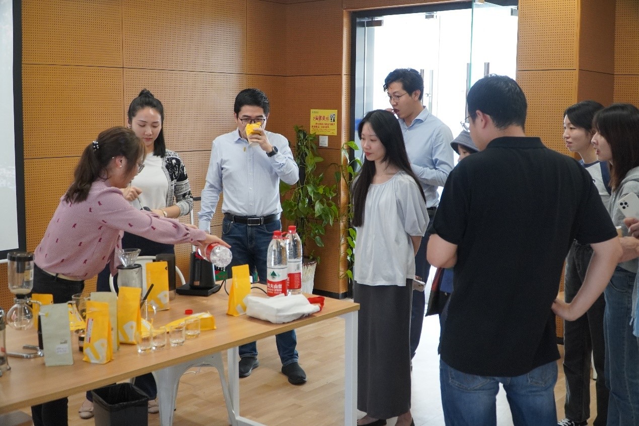 To better engage the participants into the topic, Dr. HE prepared equipment for coffee making and invited them to have a try by themselves, turning the presentation into a small joyful party. The teachers attended took an active part in the practice with the guidance of Dr. HE and had a glimpse into coffee making through interesting interactions with the presenter.
