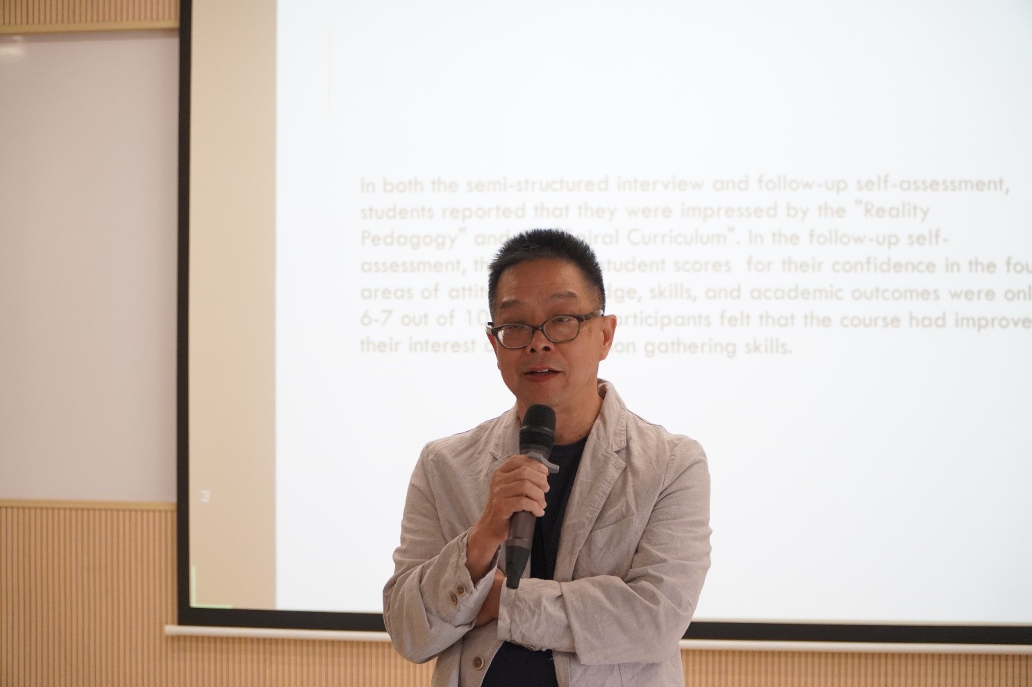 In the sharing session, Prof. Wong shared the concept of Expanded Realities and spiral learning Pedagogy. Spiral learning emphasizes the importance of continuous consolidation by revisiting key theories and concepts in various modes, empowering students to take charge of their learning. Expanded Reality Pedagogy offers students tangible opportunities to apply and comprehend specific knowledge in practical contexts. To better illustrate these concepts, he explained how they are put into practice in the legal education of social workers. For example, he discussed how to create extended reality experiences on campus, validate assumptions through real-life cross-examinations, and consolidate subject principles through publications. This is achieved by organizing group discussions, inviting experts to share their insights, and conducting open forums, based on his extensive teaching experience in Social Work and Law.