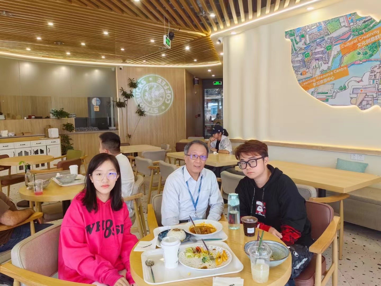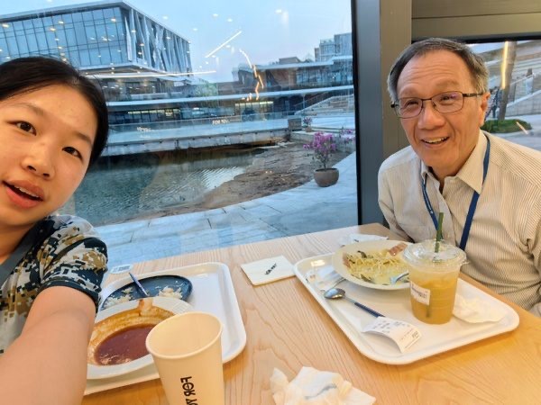 非常感谢这次活动给了我了解我感兴趣的专业CCGC (中华文化与国际传播)的机会。我先是与Dr.Yegor进行交谈,他不仅给我提供了许多有关未来发展的实用建议,还鼓励我邀请CGGC其他的老师交流,这才有了如下我与韩教授见面的图片。韩教授向我表达了关心,并向我阐述了博雅教育的理念,展现了极高的格局。希望“取贤于师,共享食光”越办越好。