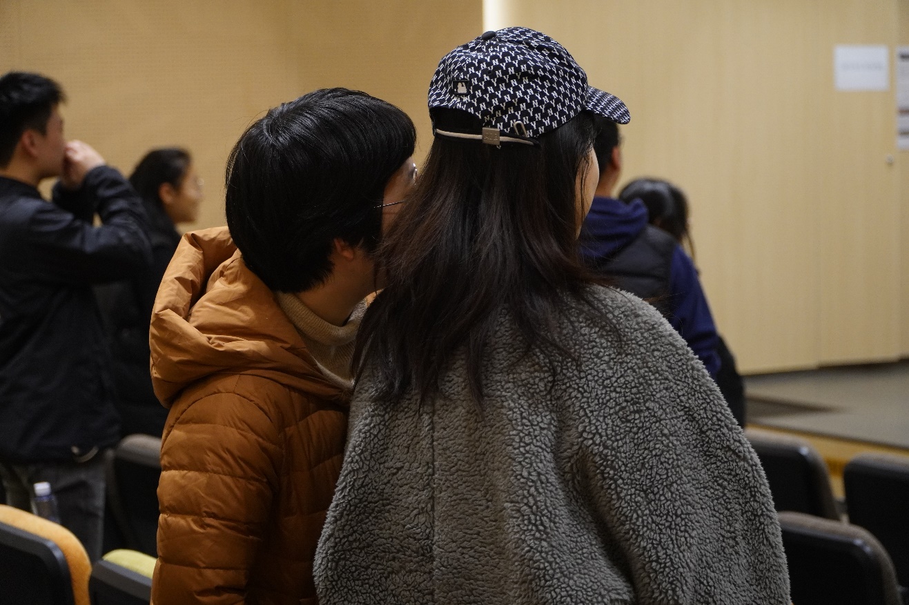 活动接近尾声时,殷亚敏教授总结了今天的演讲内容,并耐心地回答了同学们提出的问题。在被问及“如何发现用悄悄话练习的方法?”殷教授结合自己在珠海做教师讲课的经历,讲述了自己如何了解到传统广播电视播音主持课中的胸肺联合呼吸方法,并加以改良使其通俗易懂,从此新的这种方法就贯穿了他的教学生涯。在谈论“先写好稿子再背是否适合经常演讲的人?”的问题时,他表示:只要演讲人时间允许,都要按照先写好稿子再背诵的方式准备。通过这种方式可以让演讲者的技能不断熟练,随之写稿的时间也逐渐减少,最终达到一个只需要列出提纲就可以完成连贯地演讲的状态。只有通过写,读,背才可以出口成章。