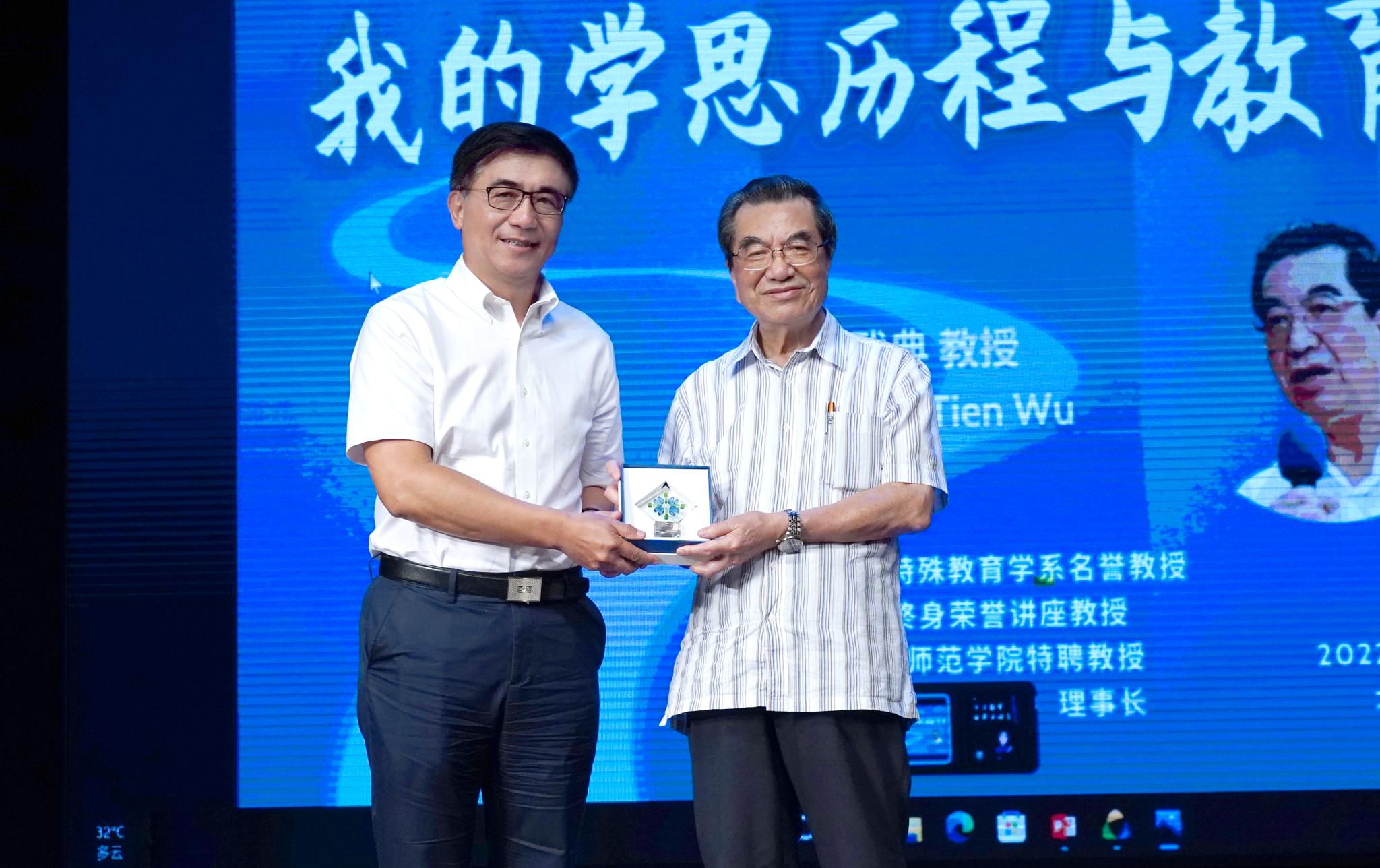 校长汤涛教授向吴武典教授致送纪念品