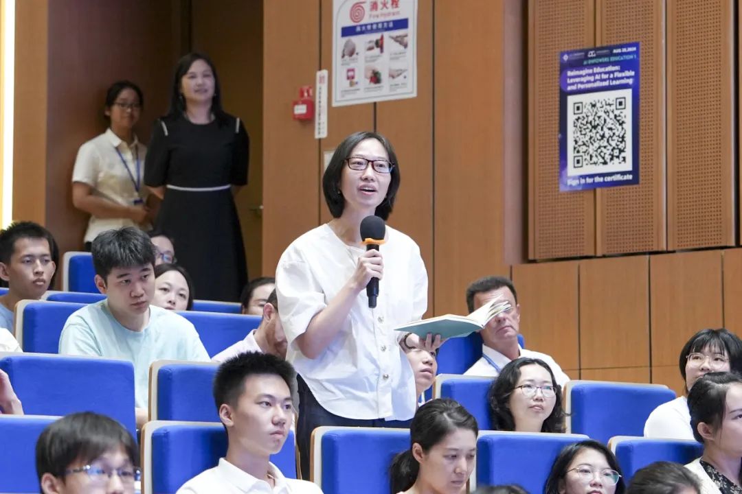 在交流互动环节,师生就在AI时代如何激发学生的创新能力等问题踊跃提问。倪教授表示,教育的目的不仅是传授知识,更重要的是引导学生将知识内化为自己的智慧和能力,他建议教师善用AI工具,积极改变教学方式和对学生的评估方法。