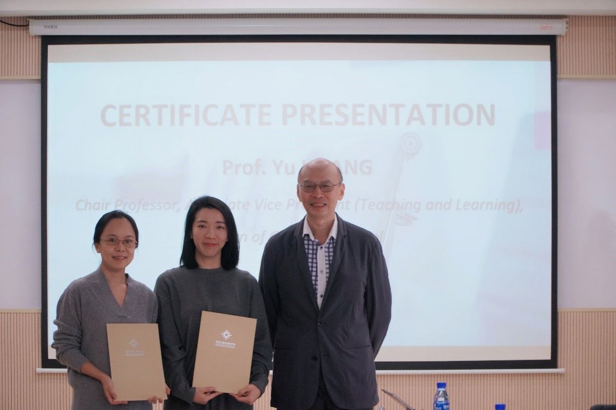 Prof. Huang Presenting Certificates to a Mentor-Mentee Pair