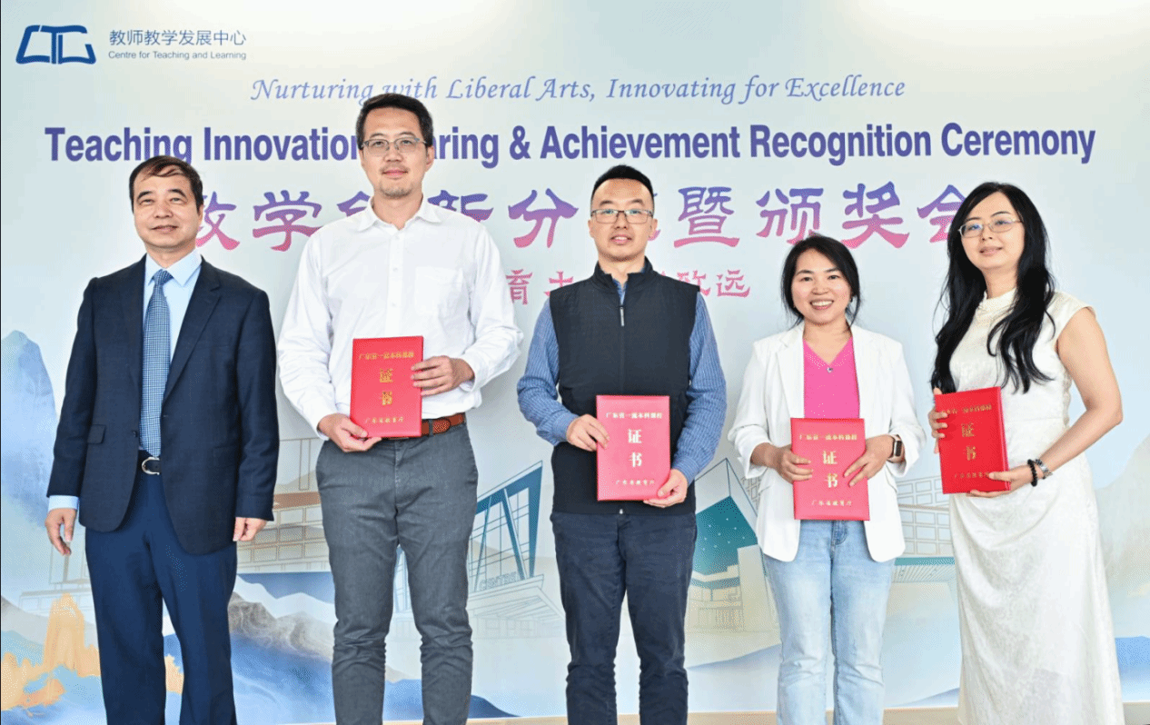 The ceremony recognized outstanding achievements across national, provincial, and institutional teaching competitions and projects, including Guangdong First-Class Undergraduate Curriculum, The Third Guangdong Higher Education Research Outstanding Achievement, The Fifth National Blended Teaching & Learning Innovation Contest in Higher Education, The Third National Teaching Innovation Contest for College Teachers - Guangdong, The Fourth National Teaching Innovation Contest, and BNBU Teaching Contests for College Teachers.
