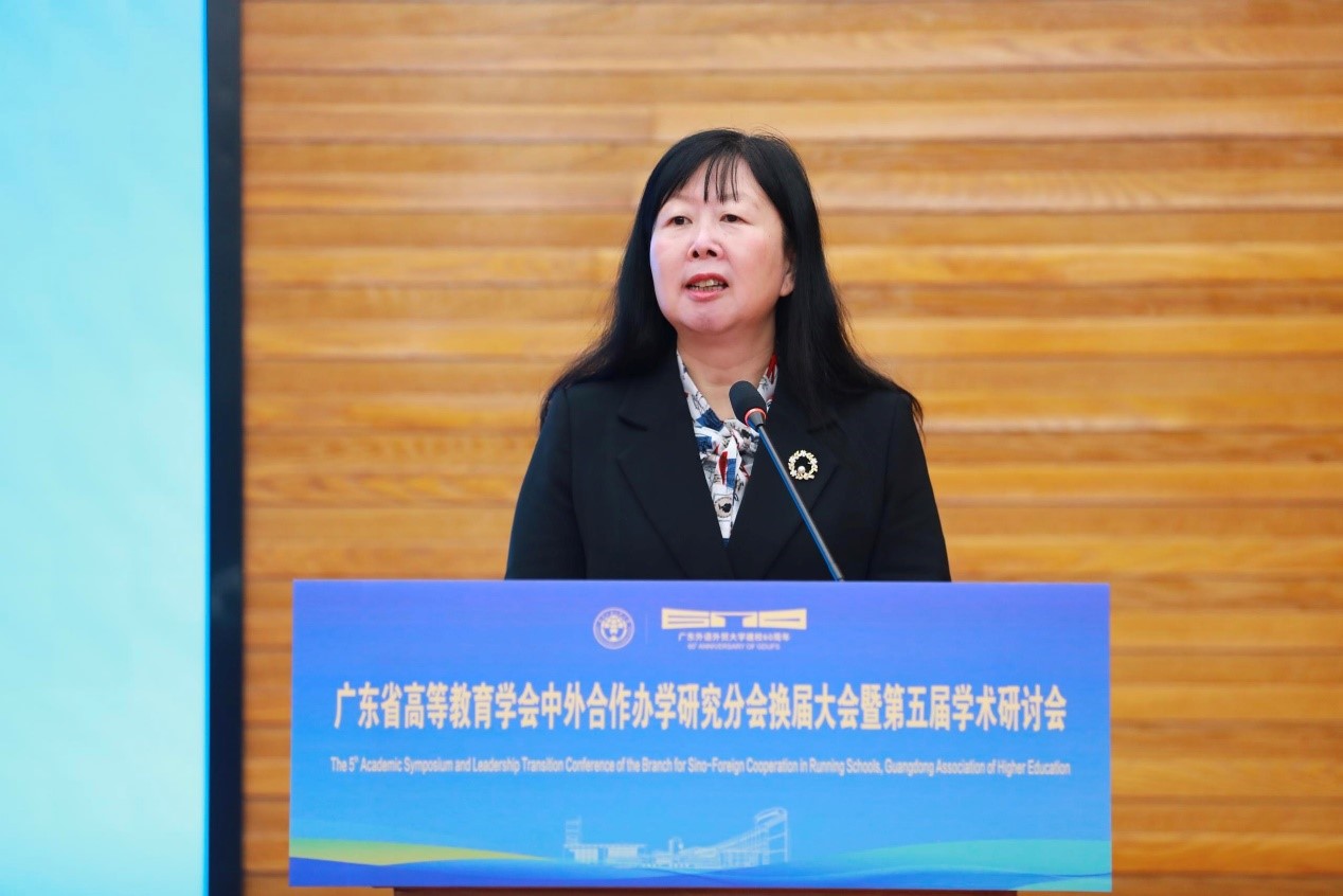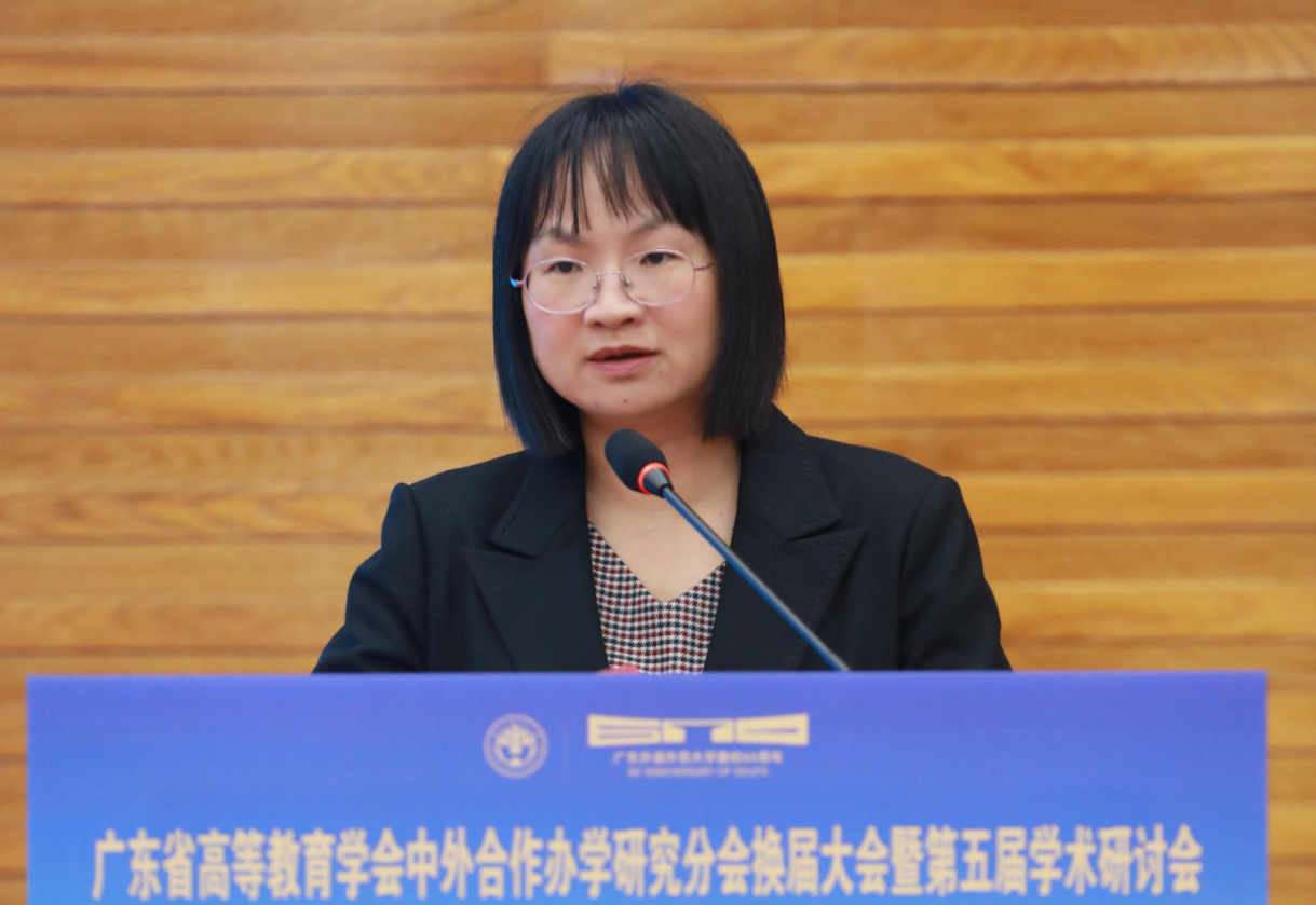广东外语外贸大学党委副书记葛小月代表承办单位致辞,介绍了学校在国际化办学和中外合作办学方面的探索与实践,表示将以本次会议为契机,进一步深化交流合作,共同推动中外合作办学高质量发展。