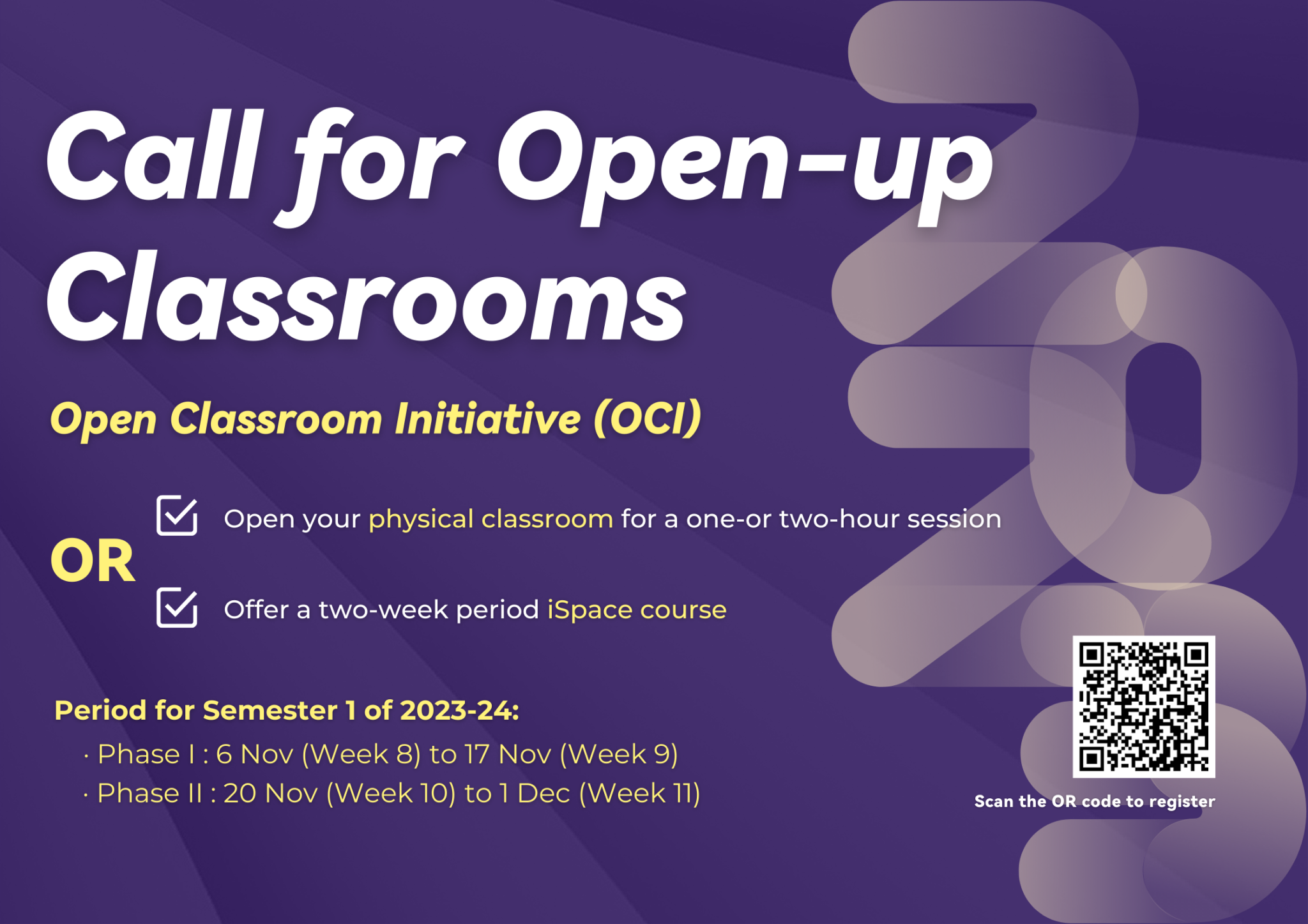Call for Open-up Classrooms for Weeks 8 & 9 (6–17 Nov): We are currently inviting teaching staff to open their classrooms during Weeks 8 & 9 (6–17 Nov) as part of the OCI. This is an excellent opportunity to share your expertise, gain valuable insights, and contribute to the professional development of our teaching community.