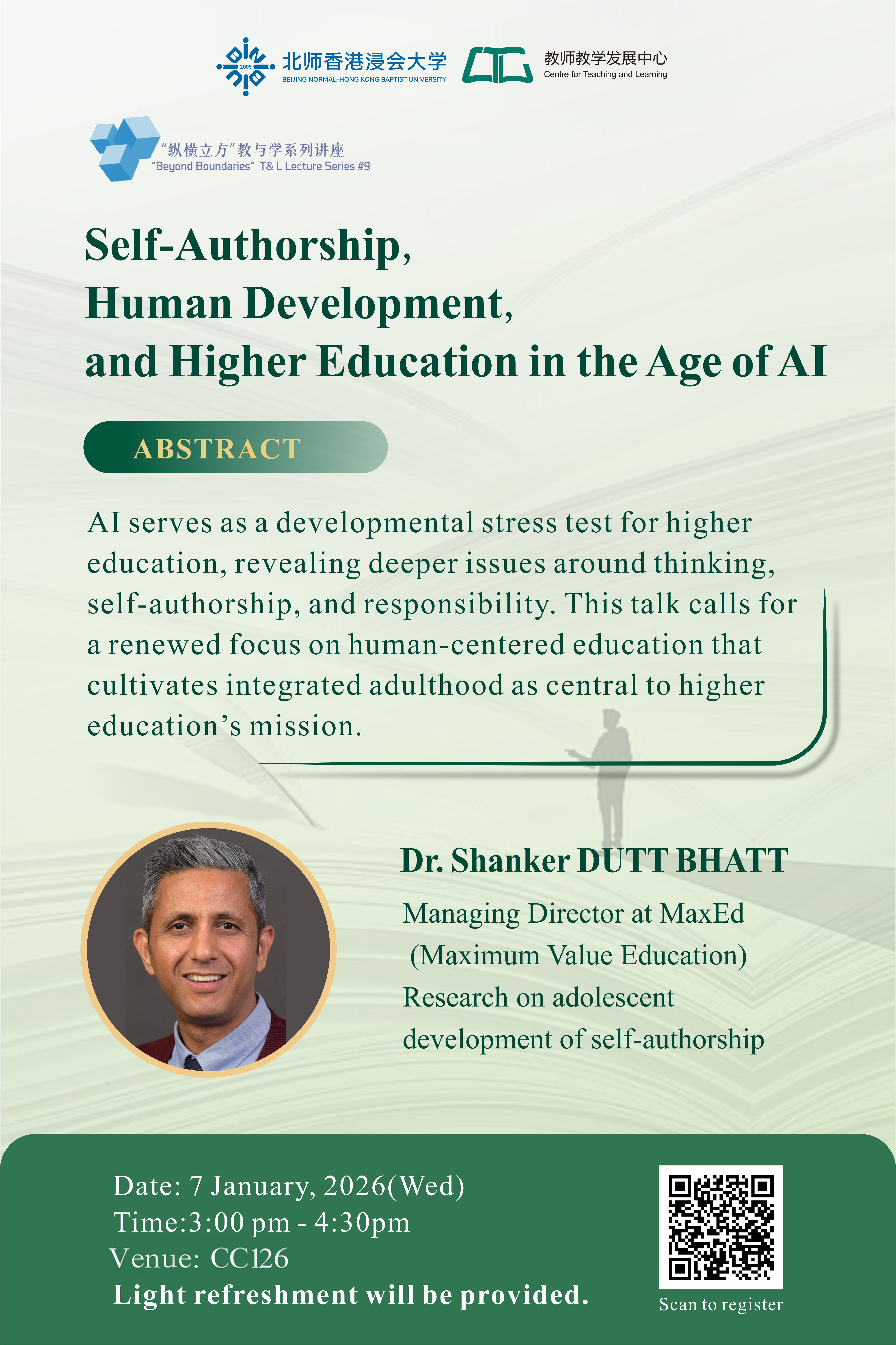 Speaker: Dr. Shanker DUTT BHATT (Managing Director at MaxED [Maximum Value Education], Research on adolescent development of self-authorship)